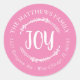 Erschwingliche, individuell bedruckte Rundaufkleber mit Rücksendeadresse personalisiert mit Ihrem Familiennamen und Ihrer Rücksendeadresse. Dieses rustikale, moderne Urlaubsdesign besticht durch schlichte JOY-Schriften und Äste auf rosa Hintergrund. Verwenden Sie die Designtools, um die Hintergrundfarbe und die Schriftart zu ändern, um Ihre eigenen Weihnachtslieder individuell anzupassen.