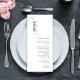 Fügen Sie Ihrem besonderen Tag eine zeitlose Touch mit klassischen Schwarz-Weiß-Hochzeitsmenükarten hinzu, die sich perfekt für verschiedene Hochzeitsstile eignen. Diese vielseitigen Menükarten eignen sich ideal für traditionelle Kirchenhochzeiten, feierliche Veranstaltungen in der Schwarzen Krawatte, moderne Minimalistische Zeremonien oder Vintag inspirierte Empfänge. Das gepflegte, elegante Design ergänzt einstöckige Themen, formale Speisen und ein raffiniertes Dekor. Ob Hochzeit oder eine große Feier, diese Menükarten bieten Ihnen eine raffinierte und gepflegte Art, Ihr sorgfältig zubereitetes Menü zu präsentieren und so Ihren Gästen einen bleibenden Eindruck verlassen.