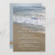 Eine elegante und dennoch einfache Hochzeitseinladung mit einem künstlerischen Design der Wellen, die am Strand fließen.