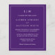 Einfache preiswerte Hochzeitseinladung mit modernem und elegantem Design mit zwei Buchstaben Monogramm oben und Ihren Details umgeben von einer dünnen Grenze. Der gesamte Text ist auf einem lila Hintergrund weiß. Die Schriftart und Hintergrundfarben können durch Anklicken des Buttons "Anpassen" in beliebig viele Farben geändert werden. Diese billigen Einladungen sind ideal für ein minimalistisches Paar.