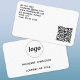 Eine einfache und berufliche Visitenkarte mit Ihrem Firmenlogo auf der Vorderseite und Ihrem QR-Code und Details auf der Rückseite. Minimalistisch und elegant, um Ihre Marke zu repräsentieren. Ändern Sie den Hintergrund und die Textfarbe, um Ihr Branding widerzuspiegeln.