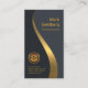 Ausrüstungsbeschreibungen eine elegante einfache Imitatgoldwelle, die vertikal über das Gesicht der Karte läuft, die seinen Raum zwischen dem Schwarzen teilt und Grau bewegt wellenartig. Im Grau liegt der Teil Ihr eleganter Name und Stellenbezeichnung an der Spitze. In der benachbarten schwarzen Welle haben Sie das Imitatgoldgewinndiagramm, das Sie benutzen können und die Kontaktdetails.