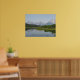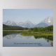 Die Berge des Grand Teton spiegelten sich auf dem Wasser wider, mit dem Zitat: "Der Mann ist der reichste, dessen Freuden am billigsten sind", geschrieben am Boden.