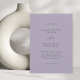 Diese einfache und geschmackvolle Hochzeitseinladung hat eine elegante Ästhetik mit einem sauberen minimalen Design. Dieses Design ist hier in einem Lavendel lila mit dunklem Holzkohle-grauem Text in anderen beliebten Farben erhältlich. Es ist eine wunderbare Wahl für Hochzeiten zu jeder Jahreszeit an jedem Ort. Die Einfachheit des Designs wird durch knackige Typografie und das Fehlen verzierter Details noch verstärkt. Eine klassische Wahl, die die Namen von Braut und Bräutigam in größerem Stil hervorhebt, sowie ein kalligraphisches Element, das die Paarnamen mit Schnörkeln und Wimpern verbindet, vermittelt ein Gefühl der Einfachheit und Eleganz.