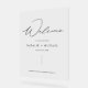 Sie suchen ein modernes und elegantes Hochzeitsempfang? Sehen Sie sich nur dieses minimalistische Skriptdesign an! Dieses Zeichen ist mit einer übersichtlichen Typografie und einem handgeschriebenen Schriftzeichen-Akzent-Schriftart ausgestattet und eignet sich perfekt für jede moderne Hochzeit. Personalisieren Sie es mit Ihren eigenen Daten mit nur wenigen Klicks auf einen Knopf. Und vergessen Sie nicht, die Erholung der Kollektion auszuprobieren, um alle passenden Artikel in diesem schönen Design zu sehen. Herzlich willkommen bei Ihren Gästen mit diesem schönen Begrüßungszeichen.