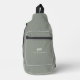 Ein individueller Rucksack im Sling-Stil mit einfachem minimalistischem Styling, dieses Design in Salbei grün mit Elfenbeinbeige Schrift hat eine Textvorlage, die Sie mit Ihren Monogramm-Initialen und Namen personalisieren können. Für unterwegs ist es eine großartige Wahl für einen aktiven Lebensstil. Nutzen Sie es für Arbeit, Schule, Sport, Reisen und vieles mehr, um Ihr Wesentliches stilvoll mit sich zu tragen.
