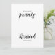 Dieses einfache, minimalistische vorbehaltene Zeichen ist perfekt für eine elegante Hochzeit. Das klassische Design zeichnet sich durch rustikale schwarz-weiße Typografie mit einem minimalen modernen Look aus. Dieses vorbehaltene Schild ist als ein gefaltetes Tisch- oder Stuhlschild konzipiert, kommt aber flach an. Man muss es abschneiden und falten. QSD113