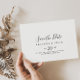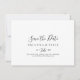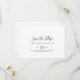 Diese einfache, minimalistische horizontale Hochzeit speichern das Datum ist perfekt für eine moderne Hochzeit. Das einfache und elegante Design zeichnet sich durch klassische und extravagante Schriftzeichen in Schwarz und Weiß aus.
