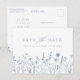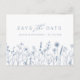 Einfache Minimalistische Elegant Dusty Blue Periwinkle Moderne Save the Date Postkarte mit Wildblumen. Mehr passende Designs und Variationen finden Sie in meinem Shop. Und zögern Sie nicht, mich für weitere Anpassungen oder Match-Artikel zu kontaktieren.