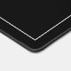 Einfache Schreibtischmatte mit modernem und minimalistischem Schwarz-Design mit Monogramm und Firmennamen auf der Vorderseite, umgeben von einer Grenze. Alle Designelemente und Farben können im Entwurfsbearbeitungstool geändert werden.