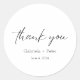 Mit unseren Minimalistischen Black & White Wedding Dankeschön an die klassischen Round Stickers. Diese Aufkleber in modernem und elegantem Design ergänzen Ihre Gastgeschenke Hochzeiten oder Dankeschön-Noten. Der minimalistische Charme und die handgeschriebene Schrift-Typografie verleihen Ihren Wertschätzungen eine Touch von Eleganz. Machen Sie mit diesen schicken Aufklebern jeden 'Dankeschön' auffällig!