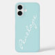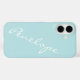 Dieses stilvolle, individuell gestaltete Handy-Gehäuse zeichnet sich durch ein einfaches minimalistisches Design Ihres Namens in einem schönen, handgeschriebenen Schriftsatz in Weiß auf einem pastellfarbenen aqua-blauen Hintergrund aus. Tolle Geschenkidee!
