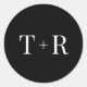 Einfache Mit Monogramm Schwarz-Weiß-Hochzeit Runder Aufkleber