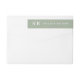 Einfache Mit Monogramm Rücksendeadresse mit festfarbigem Leaf, grüne Hochzeit, um Labels herum. Dieses moderne Hochzeitsdesign oder jedes Event-Adressdesign ist einfach und minimalistisch mit schlichter Hintergrundfarbe und trendigen Schriftart. Die neue Farbpalette für Hochzeiten. Auch ein einfaches Monogramm rechts. Die Chic Minimal Wedding Kollektion wird Ihre Hochzeit unvergesslich und schön machen! Um mehr zu sehen, suchen Sie nach Chic Paperie's Hochzeitskollektionen 2022, um alle über Trend Designs und Hochzeitsfarben für dieses Jahr zu sehen.