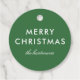 Diese einfachen Weihnachtsgeschenke-Tags sind mit minimalem typografischem Lesen versehen, "Frohe Weihnachten" über einem benutzerdefinierten Hintergrund (grün dargestellt). Die Rückseite enthält vertikale Streifen in Rot, Grün, Limon, Rostorange, aquamarin, Braun und Pfirsich.