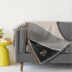Stilvolle und feminine Decke mit breiten Streifen in einer schönen Farbpalette von Elfenbein beige, rot, taupe grau und schwarz in einem Winkel. Das edle Design ist schlicht und minimalistisch mit modernem Flair. Personalisieren Sie die Monogramm-Initialen mit Ihren Initialen.