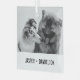 Fügen Sie Ihr eigenes Foto und Text hinzu, um ein einzigartiges Foto Geschenk zu machen. Dieses Weihnachtsbaumschmuck aus Glas ist fertig, um mit Ihrem Foto und Ihren eigenen Namen oder Nachricht in bedrückter schwarzer Schreibmaschine Stil Buchstaben angepasst werden. Der schlichte, moderne Schwarz-Weiß-Stil ist mit Fotos in Schwarz/Weiß oder Farbtönen ausgezeichnet. Zeigen Sie ein beliebtes Foto Ihrer Haustiere, ein familiäres Foto oder eine Urlaubserinnerung.