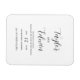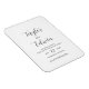 Moderne Schwarz-Weiß Hochzeit Save The Date Magnet mit einem einfachen und minimalistischen Layout mit Ihren Namen in einem eleganten Kalligraphie-Skript und Ihre Hochzeitsdetails unten in einem modernen Format. Eine Nicht-Foto-Option für ein Paar, das Save the Date ohne Bilder will.