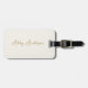 Einfache, moderne, minimalistische und sehr elegante Goldskripttypografie auf weißem Hintergrund. Einzigartige, schicke und personalisierte Gepäckmarke, ein Muss Reisezubehör für Ihre Geschäftsreisen und persönlichen Reiseabenteuer.