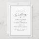 Diese schicke Einladung zum Hochzeitsfeiern beinhaltet einen modernen Script-Kalligrafietext, gepaart mit einem klassischen Serif-Schriftart in schwarz, mit einem anpassbaren Monogramm auf der Rückseite. Für erweiterte Änderungen, unter Personalisieren —> Bearbeiten mit dem Entwurfswerkzeug. Matching-Elemente verfügbar.