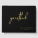 Dieses einfache Gästebuchdesign mit minimalistischer Anziehungskraft und modernem Stil besticht durch das edle, zeitgenössische, handgeschriebene Design mit echter Goldfolie. Die Namen der Braut und des Bräutigams sowie das Hochzeitstermin sind in einer einfachen Textvorlage enthalten, die Sie mit Ihren Daten personalisieren können. Auf der Rückseite des Buches befindet sich eine quadratische Bildvorlage, um ein beliebtes Foto der Braut und des Bräutigams einzubinden. Die Vorlage enthält auch Text auf der Wirbelsäule des Gästebuches, den Sie nach Belieben personalisieren können. Der schwarze Hintergrund verleiht dem Bild eine schicke Eleganz mit einem angenehmen Flair.
