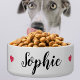 Eine niedliche Keramik-Hundeschüssel mit Wasserfarbenherzen auf jeder Seite Ihres Hundes. Ein einfaches personalisiertes Design Rae Dunn Inspirierte. Personalisieren Sie mit Ihrem Haustiernamen , ideal für einen Welpen , Hund oder Katze.