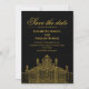 Einfache Moderne Schwarz & Gold Save the Date Einladung mit Vintagem Golden Grand Gate auf schlichtem schwarzen Hintergrund mit schlichter und eleganter Golden Typografie. Es ist eine schöne und einzigartige königliche Theme Hochzeitskarte. Passen Sie den gesamten Text auf dieser Karte an. Sie können es anpassen, indem Sie auf die Schaltfläche (Personalisieren) drücken. Wenn Sie gewollt, um es mehr anpassen, dann goto (Klicken Sie, um weitere anzupassen) Option. Dimension: 5" x 7" Anpassbar: Ja, Erstellen Sie Ihre eigene. — DIE PERFEKTION —