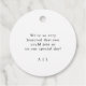Diese einfachen, modernen Styling-Gastgeschenk Hochzeiten-Tags zeichnen sich durch eine stilvolle Typografie in reinem Schwarz aus. Sie lesen "Danke" auf weißem Hintergrund. Textpassagen sind sowohl vorne als auch hinten für eine einfache Personalisierung enthalten. Elegant, elegant und modern - perfekt für Ihren besonderen Tag!