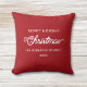 Modernes, minimales Weihnachtsakzent Kissen mit weißer Typografie auf rotem Hintergrund. Die Vorderseite zeichnet sich durch moderne Schriftzeichen und einen personalisierten Familiennamen mit Jahr aus. Auf der Rückseite finden Sie einen Beispieltext für Ihre fröhlichen Weihnachtswünsche, Segen oder ein saisonales Angebot. Dieses typografische Urlaubskissen lässt sich kombinieren und in vielerlei Hinsicht als Geschenk während der Weihnachtszeit nutzen. Genießen Sie das Design auf Zazzle und haben ein fröhliches und helles Weihnachten © y.BEE PAPERIE #ZazzleMade #christmaspillow #christmashomedecor #moderchristmaspillow