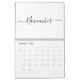 Einfache moderne, weiße und schwarze Skriptmonat angepasste minimalistisch elegante Kalender. Schwarzer, moderner, vollständig anpassbarer Skripttext auf weißem, schlichtem Farbhintergrund. Alle Farben können bearbeitet werden. Karo der Erholung der Auflistung für zusätzliche Match- und Koordinationsaufgaben.