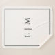 Einfache Sherpa-Decke mit modernem und dennoch elegantem Design mit Ihrem zweistelligen Monogramm, umgeben von einem dünnen Rand in klassischem Schwarz und Weiß. Diese schicke und stilvolle Sherpa-Decke ist ein großartiges Hochzeitsgeschenk für ein minimalistisches Paar.