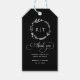 Machen Sie Ihre Gastgeschenke Hochzeiten mit diesen eleganten und anpassbaren Geschenketiketten noch attraktiver. Das Etikett zeigt ein wunderschön gestaltetes Monogramm und eine exquisite Kalligraphie, die "Danke" in einem schwarzen Hintergrund Zauber. Mit den kompletten Anpassungsoptionen können Sie Ihre Namen, Ihr Hochzeitstermin oder jede personalisierte Nachricht hinzufügen, um sie wirklich einzigartig zu machen. Diese Tags sind die perfekte Touch, um Ihren Gastgeschenke Hochzeiten eine Touch von Eleganz und Dankbarkeit hinzuzufügen. Ob Sie köstliche Leckereien oder herzliche Zwischenmahlzeiten verbringen, diese personalisierten Geschenketiketten werden Ihren Gästen einen bleibenden Eindruck verließe. Zeigen Sie Ihre Wertschätzung im Stil mit diesen anpassbaren Gastgeschenk Hochzeit Geschenketiketten.