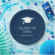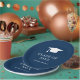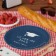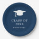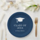 Moderne Papiertafel mit einem einfachen und maskulinen Design mit "Jahrgangsklasse" in großer, mutiger Typografie, einem Gradcap und dem Namen des Absolventen in Weiß auf einem marineblauen Hintergrund. Die Hintergrundfarbe kann in eine beliebige Farbe geändert werden. Diese Teller sind perfekt für einen Typ-Absolventen und sind eine gute Möglichkeit, um eine persönliche Touch zu Ihrem Abschlussfeier hinzuzufügen.