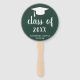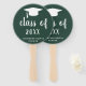 Minimalistische Abschluss-Handfans mit einem schlichten und klassischen Design mit Graduiercap und "Klasse des Jahres" in einer dicken Schrift zusammen mit dem Namen des Absolventen in Weiß auf einem waldgrünen Hintergrund. Die Hintergrundfarbe kann in eine beliebige Farbe geändert werden. Traditioneller Stil mit modernem Flair für einen Absolventen.