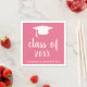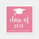 Minimalistische Serviette aus Abschluss mit einem schlichten und klassischen Design mit einem Graduierdeckel und "Klasse des Jahres" in einer dicken Schrift zusammen mit dem Namen des Absolventen in Weiß auf einem rosa Hintergrund. Die Hintergrundfarbe kann in eine beliebige Farbe geändert werden. Traditioneller Stil mit modernem Flair für einen Absolventen. Diese Papierservietten sind eine großartige Möglichkeit, Ihrer Abschlussfeier eine persönliche Touch hinzuzufügen.