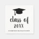 Minimalistische Serviette aus Abschluss mit einem schlichten und klassischen Design mit einem Graduierkopf und "Klasse des Jahres" in einer dicken Schrift zusammen mit dem Namen des Absolventen in schwarz auf einem weißen Hintergrund. Die Hintergrundfarbe kann in eine beliebige Farbe geändert werden. Traditioneller Stil mit modernem Flair für einen Absolventen. Diese Papierservietten sind eine großartige Möglichkeit, Ihrer Abschlussfeier eine persönliche Touch hinzuzufügen.