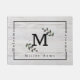 Bauernhof Rustikal graue Holzkörbe Leaf Zweige Welcome Floor Mat mit Black Modern Serif Schriftart und Custom Your Name Initial Letter, um es zu einem persönlichen Gruß Doormat!