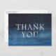Moderne und männliche Dankeschön an die Postkarte mit einem einfachen Design mit "Danke" in großen fett weißen Buchstaben über eine dunkelmarineblau blaue Wasserfarbenwäsche. Die Rückseite hat Ihre Rücksendeadresse und Ihre persönliche Nachricht zusammen mit Ihrer Unterschrift, Ihrem Titel und Ihrem Firmennamen. Dieses Design ist ideal für jedes berufliche Unternehmen.