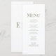 Erhöhen Sie Ihren Hochzeitsempfang mit der Simple Olive Green Monogram Wedding Menu Card. Dieses minimalistische Design mit einem knusprigen, weißen Hintergrund und elegantem olivgrünem Text unterstreicht oben ein personalisiertes Monogramm. Die klaren Linien und die einfache Anordnung sorgen dafür, dass das kulinarische Angebot im Vordergrund bleibt, und sorgen für eine Touch raffinierter Einfachheit in den Tischumstellungen. Diese Karte ist perfekt für moderne, natürliche oder rustikale Hochzeiten geeignet und bietet eine harmonische Mischung aus Eleganz und Charme.