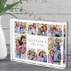 Personalisierter Acrylblock "Oma". Dieser schlichte und elegante Acrylblock ist eine wunderschöne Möglichkeit, hochgeschätzte Erinnerungen zu präsentieren. Das Design bietet Platz für acht Fotos, die in einem Rahmen um die Kanten angeordnet sind, während der Fokus auf den sinnvollen Text in der Mitte behalten wird. In der Mitte wird "Oma" in einem klassischen Serif-Schriftart angezeigt, mit einer zweiten Zeile in handgeschriebenem Skript, um die Namen der Enkel hinzuzufügen oder eine besondere Nachricht. Der weiße, saubere Hintergrund verleiht ihm ein zeitloses und raffiniertes Ambiente. Vollständig anpassbar, können Sie den Text, die Schriftart, die Farben und die Fotos anpassen, um ein persönliches und bedeutendes Geschenk zu schaffen - perfekt für Muttertag, Geburtstag, Feiertage oder jeden besondere Anlass. Dieser dekorative Acrylblock dient als zeitloser Sake zum Feiern von Oma.