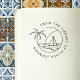 Diese einfache, runde, von Hand gezeichnet Individuelle Name Library Book Briefmarke mit Sommerlandschaft mit Palmen, Ozean, See und einem Boot, ist perfekt für die Personalisierung Ihrer persönlichen Bücher! Klicken Sie zum Anpassen auf den Button "Personalisieren" und ändern Sie den Namen in Ihren eigenen Namen.