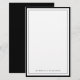 Erhöhen Sie Ihre Korrespondenz mit dieser einfachen und eleganten Notizkarte mit schwarzem Rand. Diese Karte ist für einen zeitlosen und anspruchsvollen Look konzipiert und verfügt über einen sauberen weißen Hintergrund, der von einem klassischen schwarzen Rand eingerahmt wird, wodurch sie perfekt für den persönlichen oder geschäftlichen Gebrauch ist. Ob Sie Dankesbriefe, persönliche Nachrichten oder geschäftliche Korrespondenz schreiben, diese anpassbare Karte verleiht Ihrer Kommunikation einen raffinierten Touch.