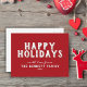 Moderne einfache Red Happy Holidays Postcard. Weiße Typografie ist auf einem roten Hintergrund - passen Sie den Familiennamen und das Jahr an.