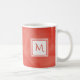 Eine schlichte Tasse aus Marmor in Orangetönen mit einem modernen Abzeichen mit weißem Quadrat, das Sie durch das Hinzufügen eines mit Monogramm Anfangs personalisieren können. Dies ist Teil der Cherry Tomato Red Subtle Marmor Monogram Collection.