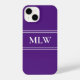 Einfache Royal Lila und weiß Mit Monogramm iPhone 14 Hülle