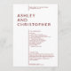 Einfaches minimalistisches Hochzeitsfeierprogramm, das von Fremdverzierung und Priorisierung von Funktionalität, Ausgewogenheit und Harmonie beraubt wird. Das Design hebt die Namen des Paares als Brennpunkt in einem großen abgeschiedenen Textblock hervor und verschiebt den Abstand für die übrigen Details. Saubere minimalistische Typografie. Auf der Kartenrückseite befinden sich das Brautparty und die einfachen Memorydetails in weißem Text auf farbigem Hintergrund. Erhältlich in einer kuratierten Auswahl an modernen, reichen Farben. Design ist leicht anpassbar und personalisiert. Bitte wenden Sie sich an uns, um Ihre Wünsche zu erfüllen. Immer gerne helfen! Hinweis: Alle Textbereiche werden leer Verlassen, um das Entwurfstool für spezifischere, aufwändigere Anpassungen zu entfernen oder zu verwenden.