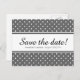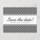 Einfache Save the Date Postkarten mit grauem und weißem Polka-Punktmuster. Modernes, schicke Punkt-Printdesign für elegantes Hochzeitsfest-Party. Der moderne Stil ist trendig und lustig. Benutzerdefinierte Hintergrundfarbe und personalisierter Vorlagentext auf der Rückseite. Ändern Sie die Menge, um den günstigsten Preis pro Karte zu erhalten.
