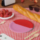 Diese schlichten Rot- und Rosa-Party-Teller sind eine gute Wahl für jedes Party-Event.