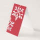 Schönes minimalistisches Design mit zwei symmetrischen weißen Schneeflocken auf dem roten Hintergrund. Ideal für die Wintersaison und die Weihnachtsdekoration.