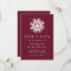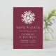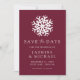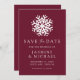 Erzählen Sie Ihre Winterhochzeit mit unserem Simple Snowflake Wine Save the Date. Mit einer fett weißen Schneeflocke und "Save the Date" in eleganten Serif- und Kalligraphieschriften auf einem weinfarbigen Hintergrund erweckt dieses Design die Schönheit des Winters. Personalisieren Sie mit Ihren Namen, Hochzeitstermin und Standort unten. Ideal für Winter-, Ferien- und Weihnachtsfeiern, dies Save the Date den Ton für eine zauberhafte Feier.